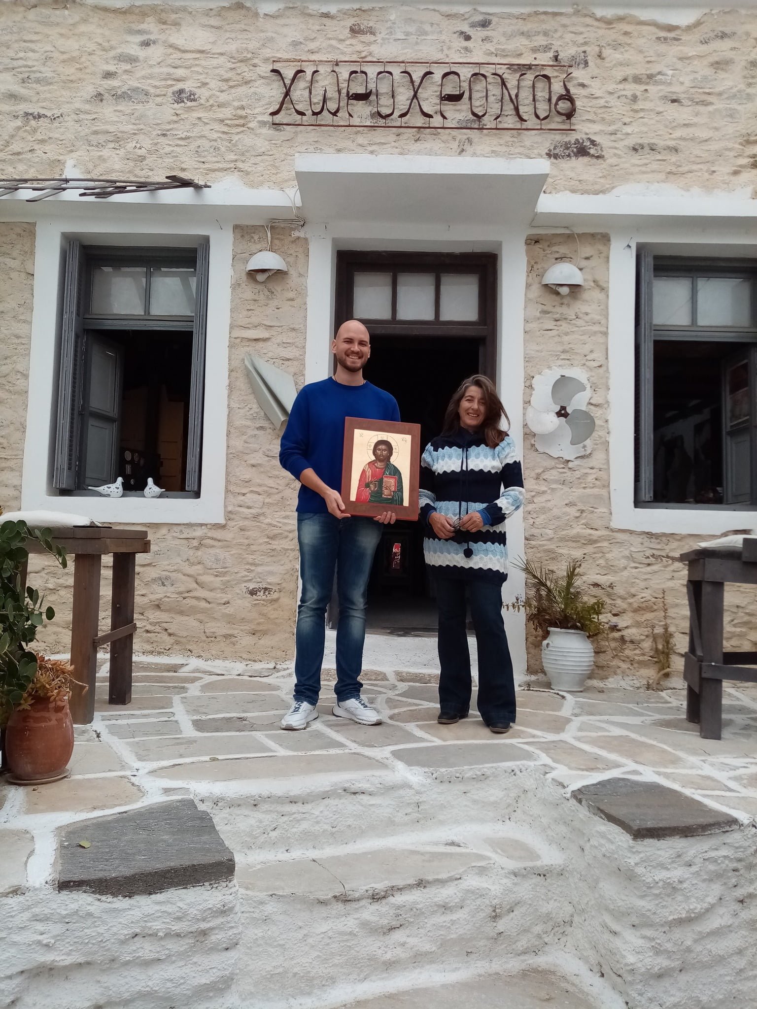 From her early days crafting bracelets from beach-combed treasures, Marina’s talent blossomed, leading her to formal studies in Athens. She established a studio in Paros, where she has significantly contributed to icon restoration and church art.