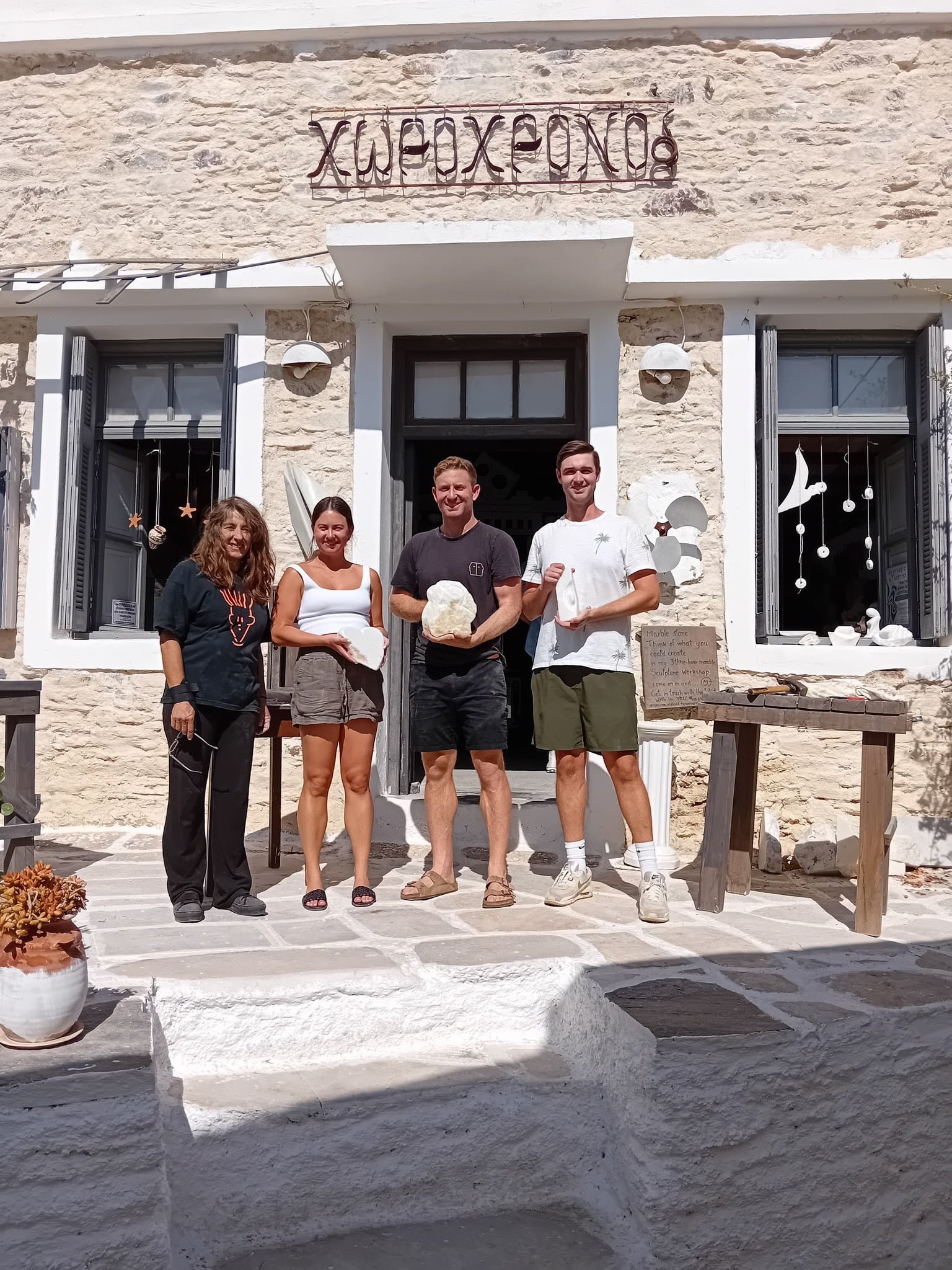 Our second workshop location offers a raw, exclusively outdoor experience, nestled on the outskirts of Lefkes, perched along the gorge. It boasts breathtaking views of the Aegean Sea, the neighboring island of Naxos, and the quaint village church. From this vantage point, you’ll also enjoy a captivating worm-eye perspective of Lefkes Village, enhancing the grandeur of its scenic beauty.